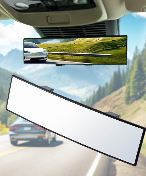 - 【Anti-Glare】: This panoramic rearview mirror can reduce the interference of strong light to the driver’s vision and thus improve driving safety through the design of the magnification function and glare protection layer.